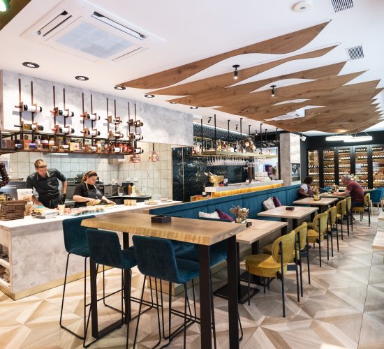 Diseño y realización de proyectos para restaurantes, optimizando la distribución y creando espacios atractivos que aumentan las ventas y mejoran la rentabilidad.